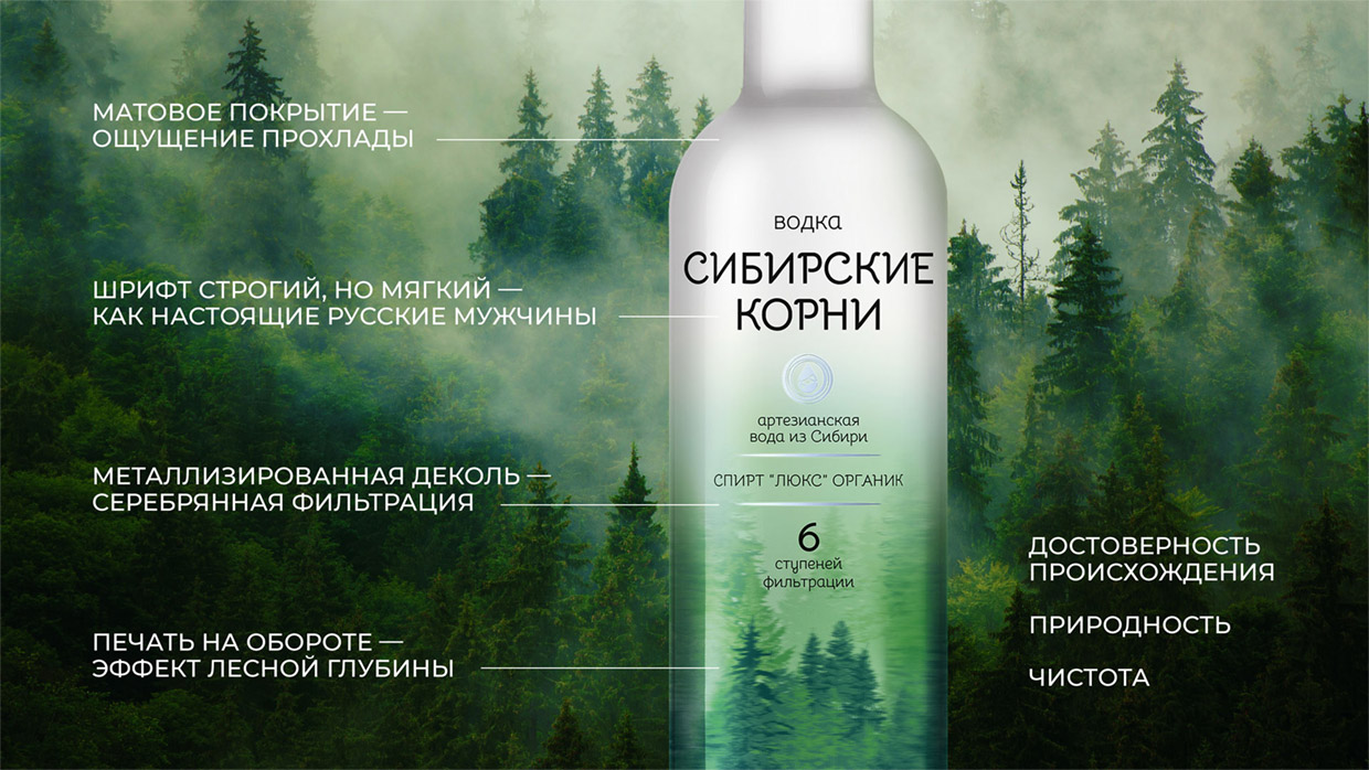 Название «Сибирские корни» усиливает этот эффект, напоминая о ещё одном символе России – Сибири, с её огромными чистыми нетронутыми территориями.