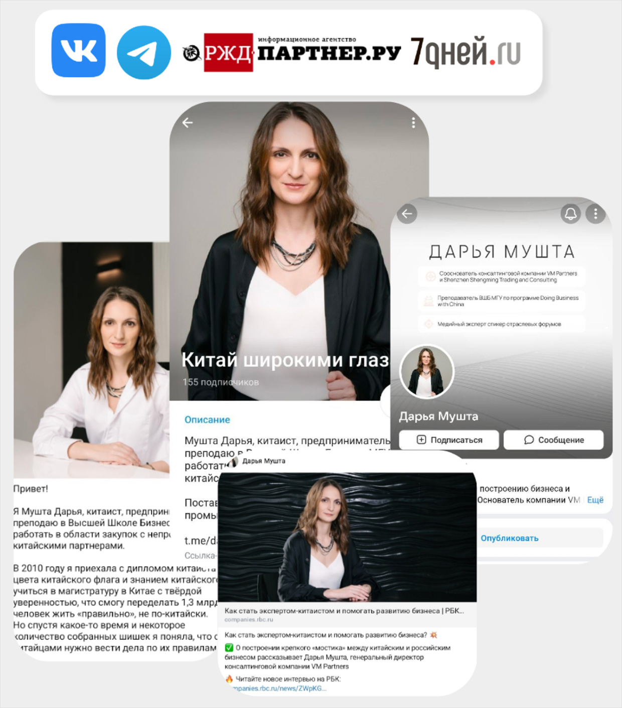 Дарья Мушта — китаист-переговорщик с разносторонним опытом и сооснователь консалтинговой компании. Её жизненный опыт впечатляет: детство и учёба в Китае, глубокое понимание местного производства, юриспруденции и логистики, опыт построения бизнес-мостов.