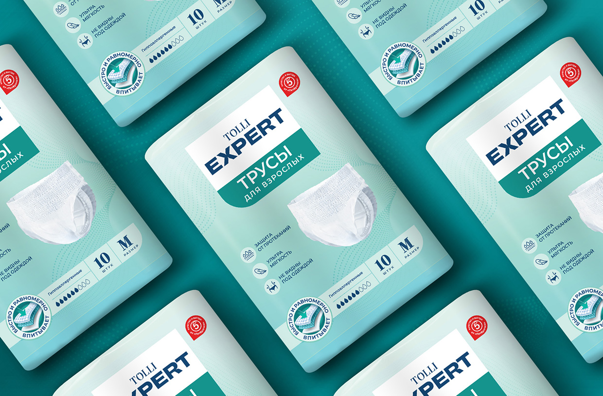 Tolli Expert — и это снова гигиена с заботой, а не медицинским холодом. Для взрослого ухода — с достоинством и уверенностью.