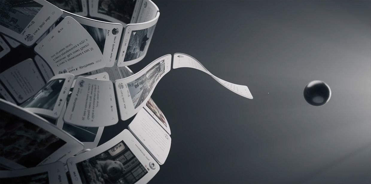 Эпоха 3 — 2010-еМобильные устройства, вертикальные экраны, бешеный темп новостей. Появляется бесконечная лента, в которой легко потерять главное. Эта эпоха передана через динамику: множество экранов, быстрые переходы, ритм, в котором информация едва успевает за временем. «Российская газета» остается ориентиром — структурирует поток, вычленяет важное, удерживает суть.