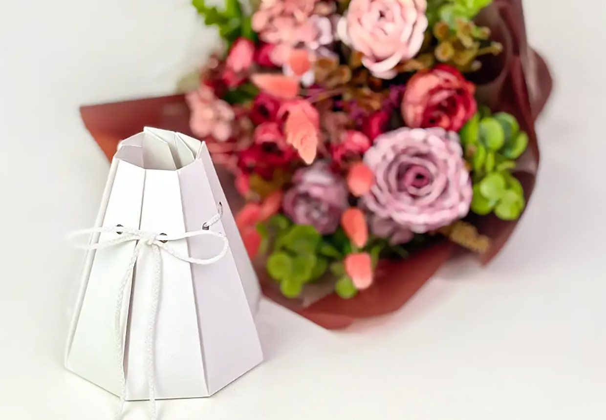 Решение подходит как для доставки, так и для использования в качестве готовой вазы, а также допускает повторное применение и предлагает широкие возможности кастомизации — по дизайну, печати, размеру и элементам брендирования.