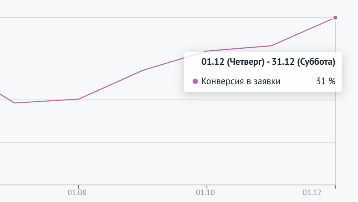 Результат: за счёт точных настроек общая конверсия в заявку на всех площадках выросла с 5,4% до 31%