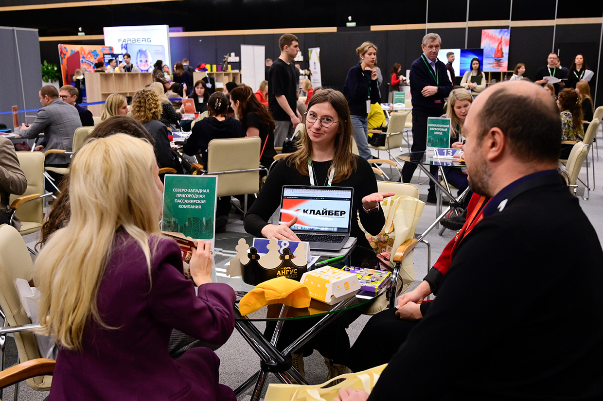 Переговоры проходят в индивидуальном формате и сопровождаются безлимитным кофе-брейком. За столиками располагаются заказчики, c которыми поставщики проводят переговоры в течение всего дня.