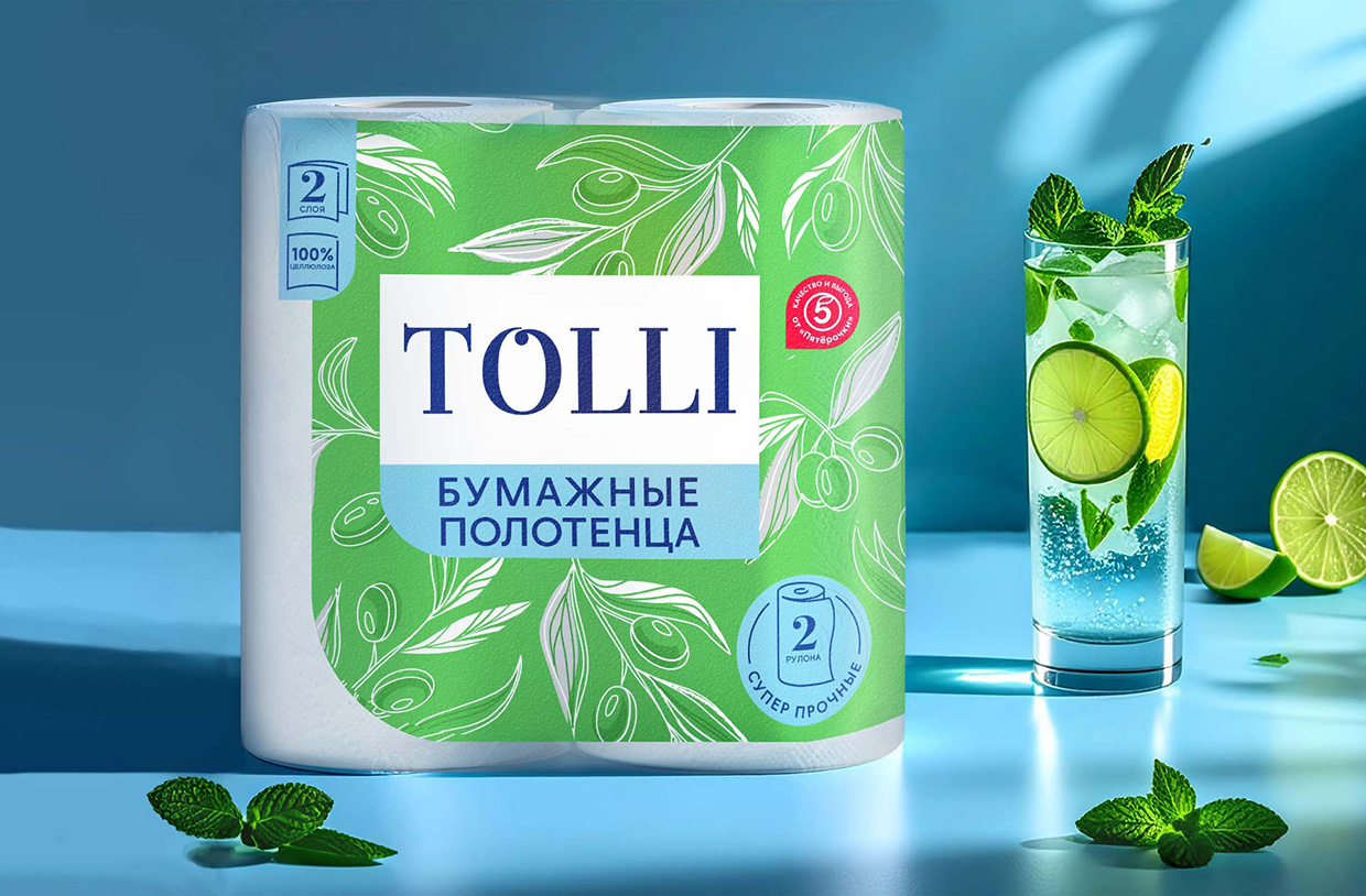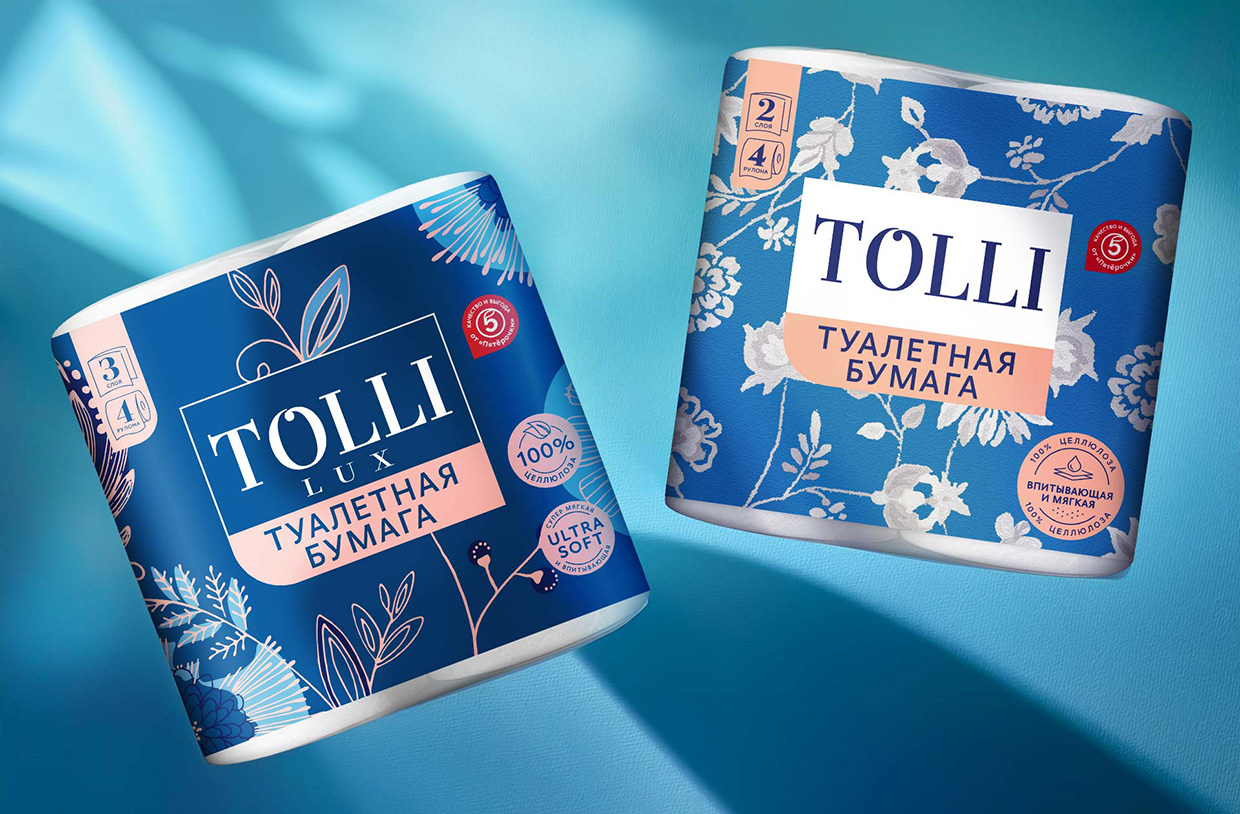 Брендинговое агентство Uprise обновило дизайн упаковки серии гигиенических товаров под брендом Tolli для сети магазинов «Пятёрочка».